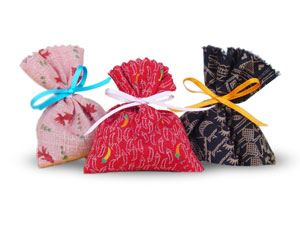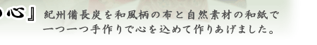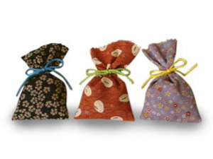 細かく砕いた備長炭を木綿の巾着袋に詰めています。すべて、手作りです。引き出し、食器棚の中にもどうぞ。 |