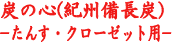 | 上質の紀州備長炭をきれいな和紙に包んだ室内インテリア用。置くだけで空気中の嫌な臭いや湿気もしっかり除去。パソコン・テレビなどの電磁波防止にも役立ちます。 |